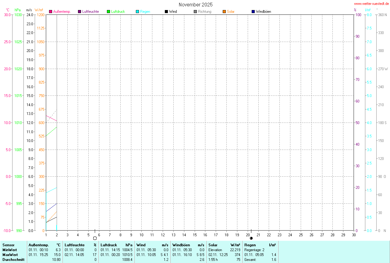 | Sonnenaufgang gestern | 07:21 1. November 2025 |