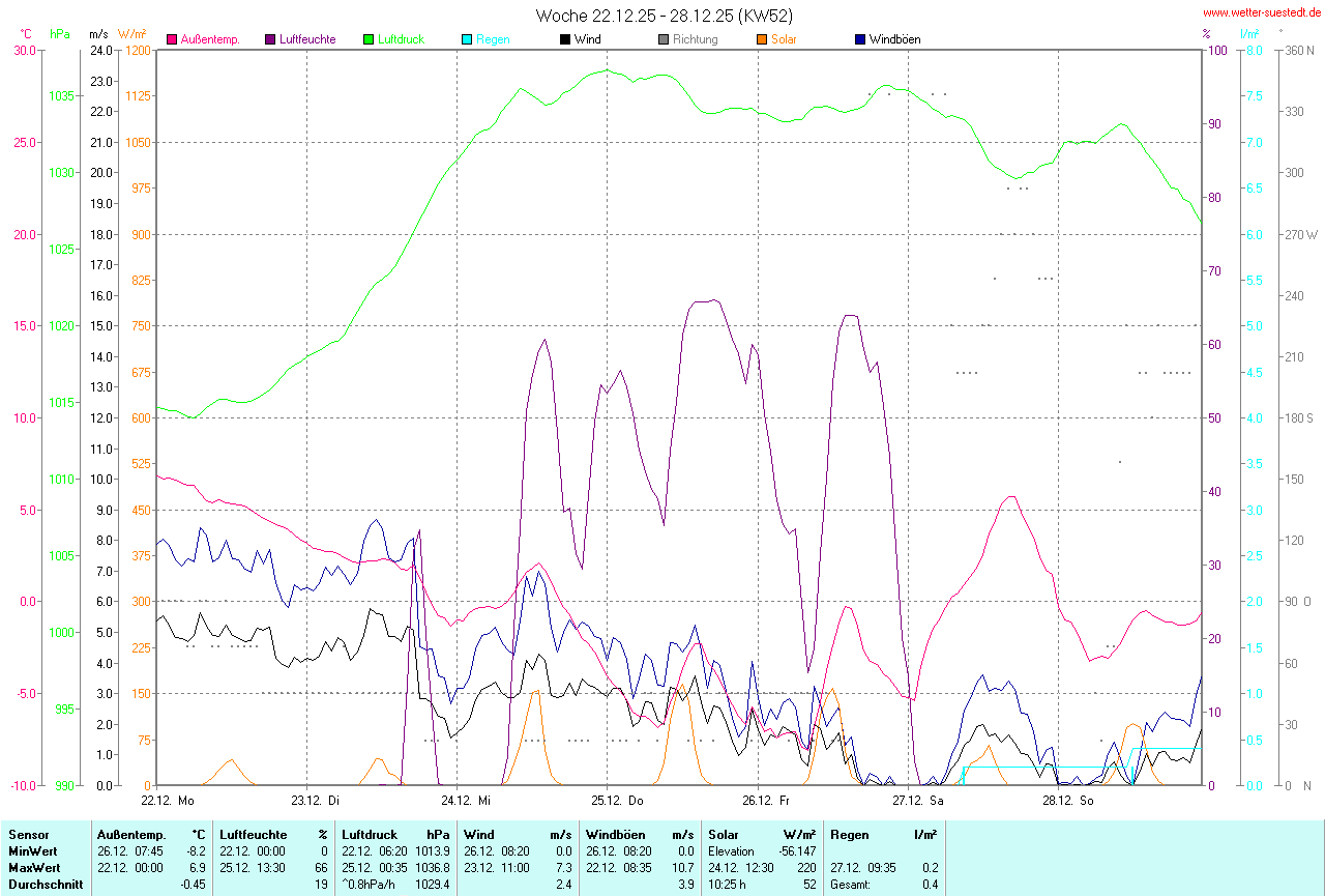 | Der Luftdruck ist auf Meereshöhe bezogen! |